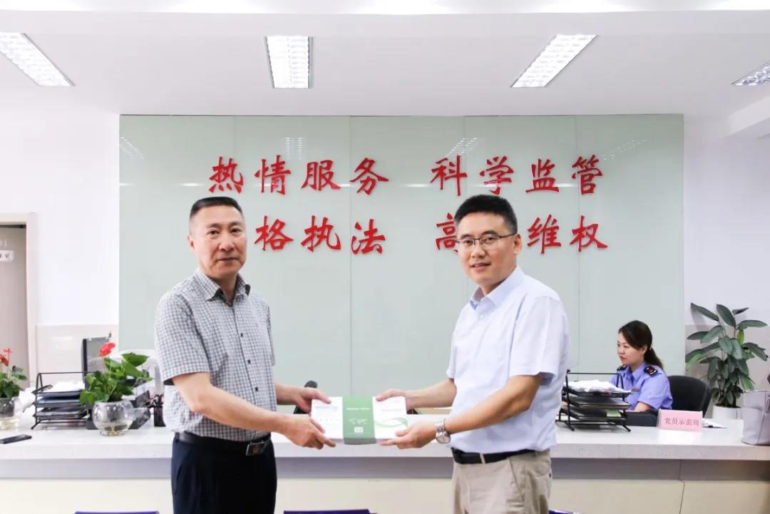 ▲雨花台生态环境局局长周兵与雨花台区市场监督管理局局长李君毅在雨花台市场局雨花分局审批大厅共同开展餐饮新、改、扩项目环保告知服务