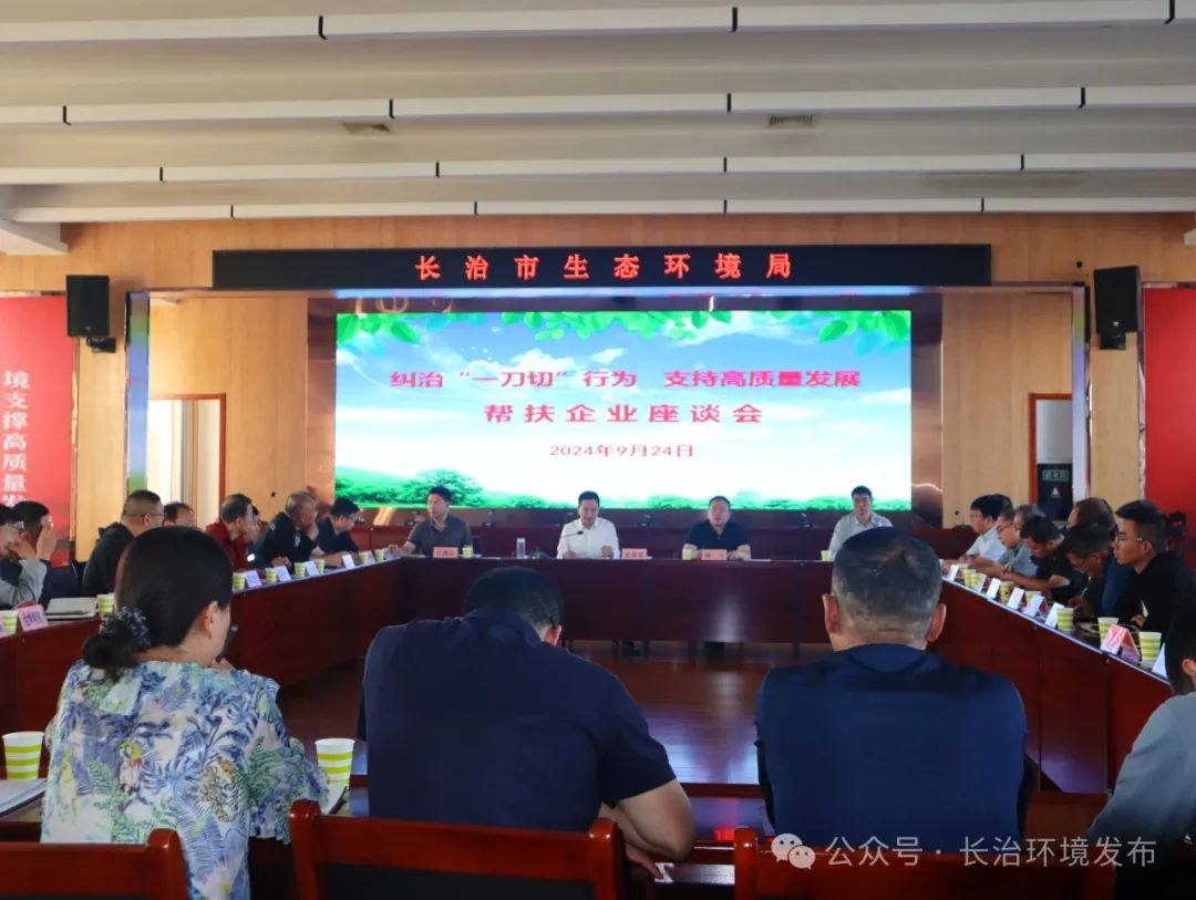 2024年9月24日,长治市生态环境局组织召开“纠治‘一刀切’行为、支持高质量发展”帮扶企业座谈会。市生态环境局班子成员,市局大气、水、土壤等相关科室负责人及首钢长治钢铁有限公司、山西锦能能源有限公司、山西潞安焦化有限责任公司等 27 家各行业企业代表参加会议。
