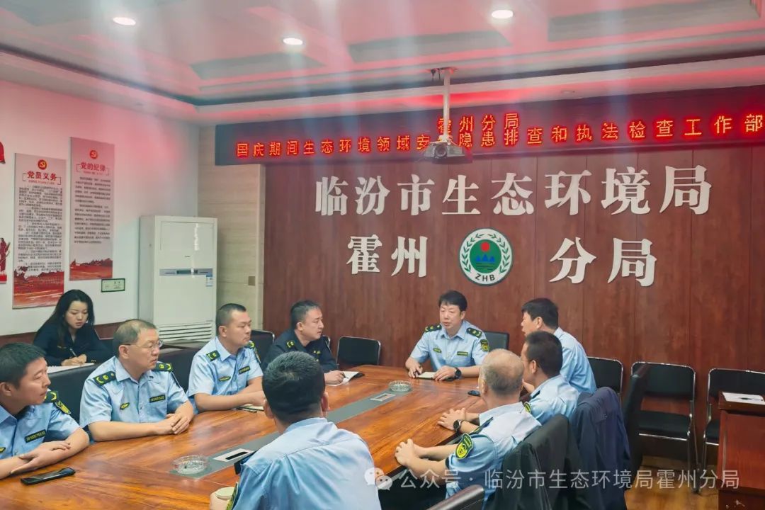 导读:10月1日上午,霍州分局组织召开国庆期间生态环境领域安全隐患排查和执法检查工作部署会。霍州分局党组书记、局长王将科主持会议,分局分管领导及全体执法队员参加会议。会议传达...