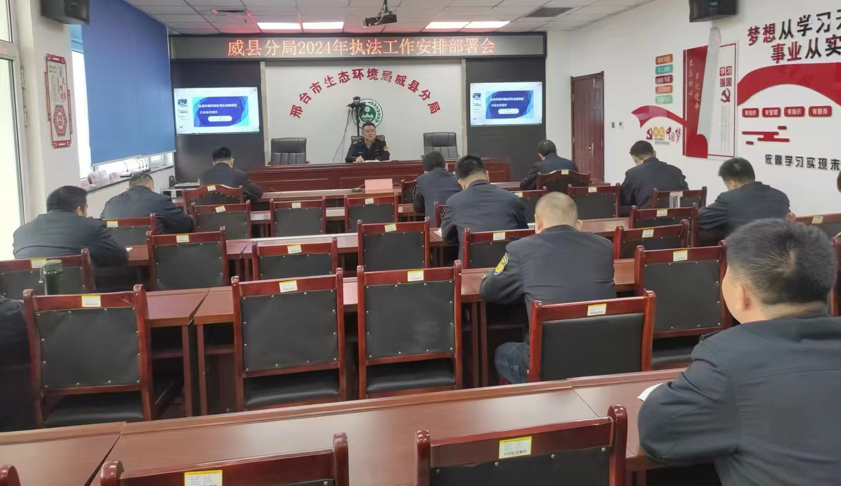 为进一步加强生态环境保护综合行政执法能力,抓紧适应新形势、新常态,加快建设一支忠诚、干净、担当的高素质执法铁军,邢台市生态环境局威县分局从4个方面加强队伍建设,助力深入推进污染防治攻坚战。