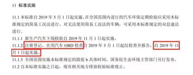 第二步,对于标准新增内容,如柴油车NOx检测和OBD检查,2019年11月1日起正式实施。根据大气污染防治法的有关规定,具备条件的地区可经省级人民政府批准并经向生态环境部备案后,可早于上述日期提前实施在用车排放标准。
