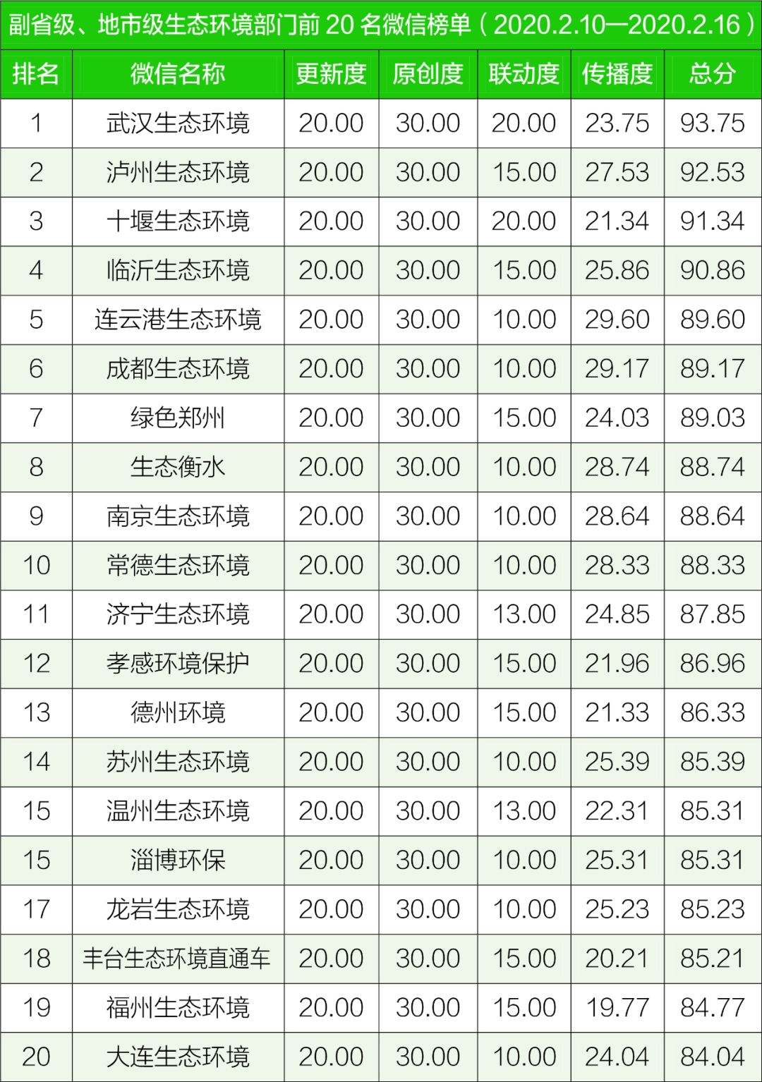 七、副省级、地市级生态环境部门微信进步前20名榜单