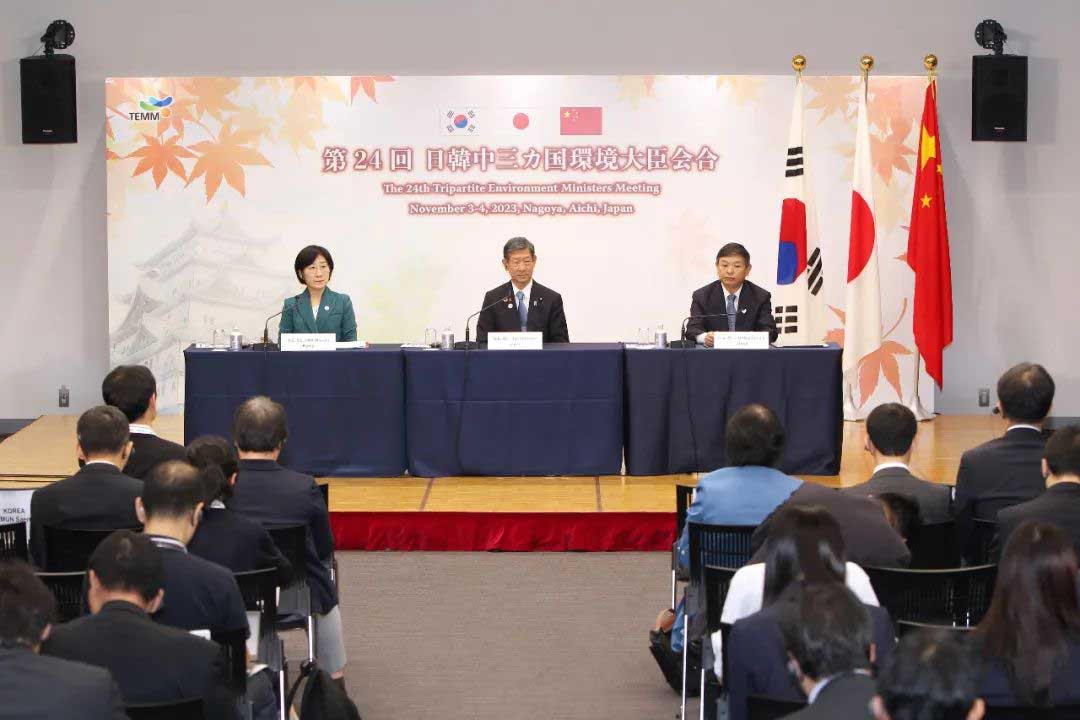11月3日至4日,第二十四次中日韩环境部长会议在日本名古屋市举行。中国生态环境部部长黄润秋、日本环境大臣伊藤信太郎、韩国环境部部长韩和真分别率团出席会议,交流本国环境政策及最新进展,并就共同关心的区域和全球环境议题交换意见。会议审议了《中日韩环境合作联合行动计划(2021—2025)》实施情况,通过并共同签署《第二十四次中日韩环境部长会议联合公报》。